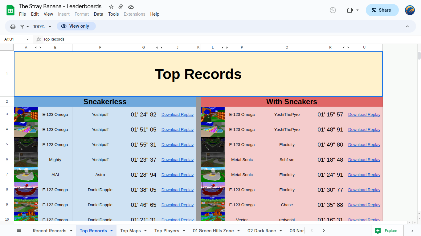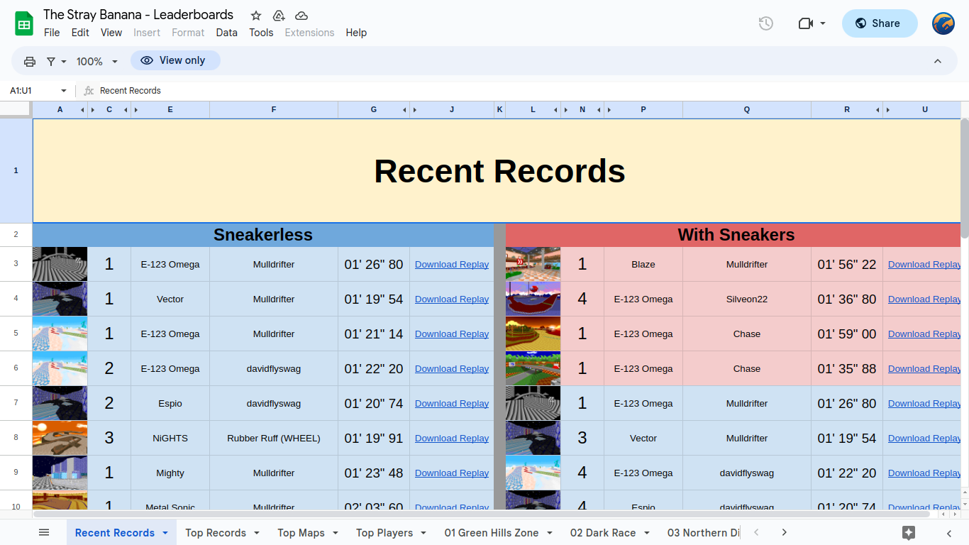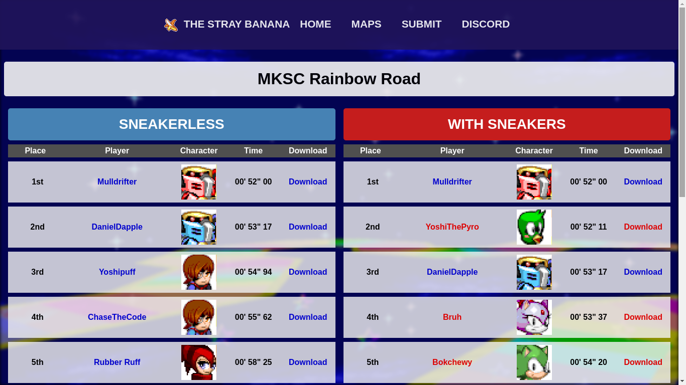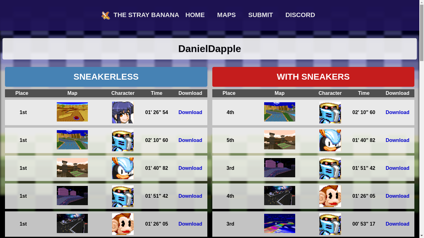 These Leaderboards were developed for The Stray Banana which is a community for players of the game Sonic Robo Blast 2 Kart.