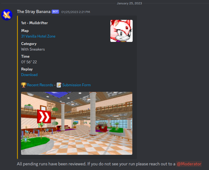 I later added a Google App Script that will notify a mod only channel in the community Discord whenever a run has been submitted. These notifications include a direct link to the row of the submission so moderators don't have to scroll through over 700 records of submissions and if moderators don't review the pending runs it will give a weekly reminder.