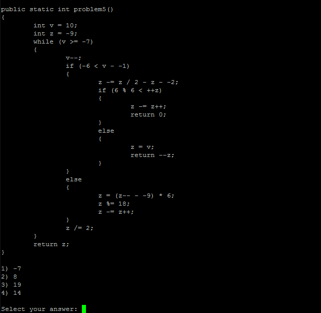 This is a 41 file project where I re-implemented various basics of Java such as variables, if statements, and loops. From there I wrote a generator that will randomly generate quiz questions in which you need to figure out what the given function returns.