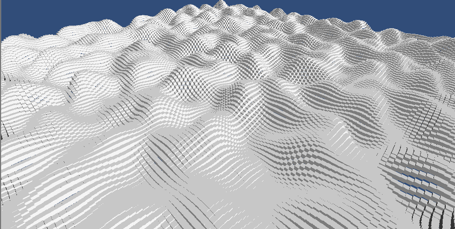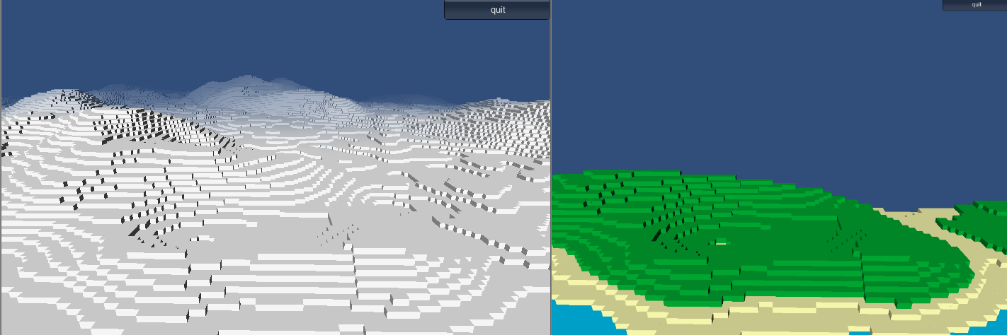 After I got the noise functioning the way I intended I started playing around with changing the colors of the cubes I was instantiating and coming up with different ways to overlay different noise maps on top of each other.